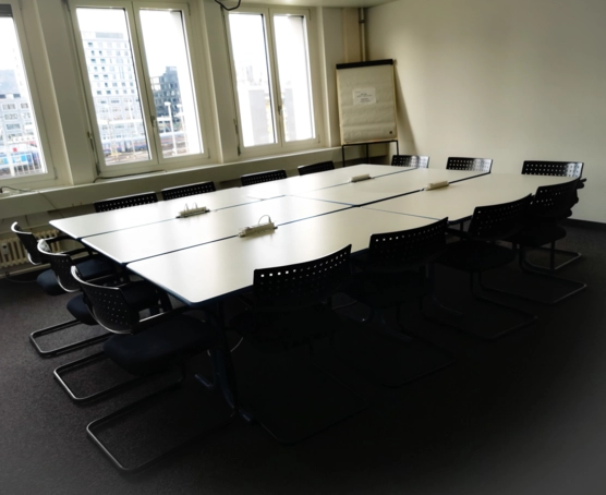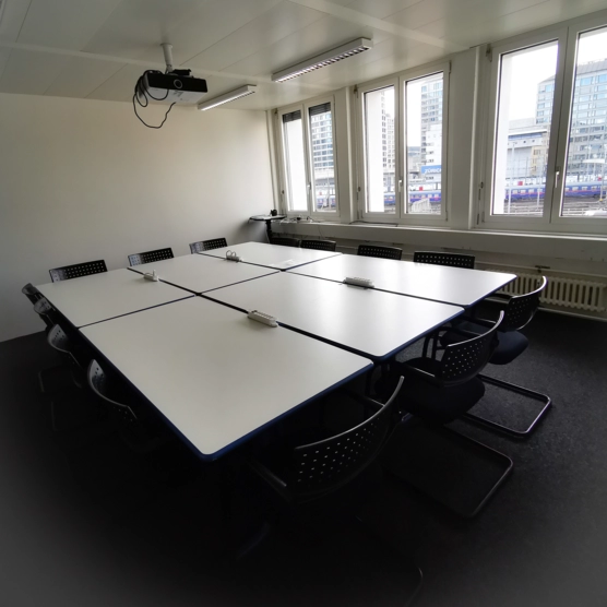 Wir vermieten an der Neugasse 10 in Gehdistanz vom Hauptbahnhof ein ideal eingerichtetes Sitzungszimmer für Kurse, Schulungen und Arbeitsmeetings bis max.14 Personen.